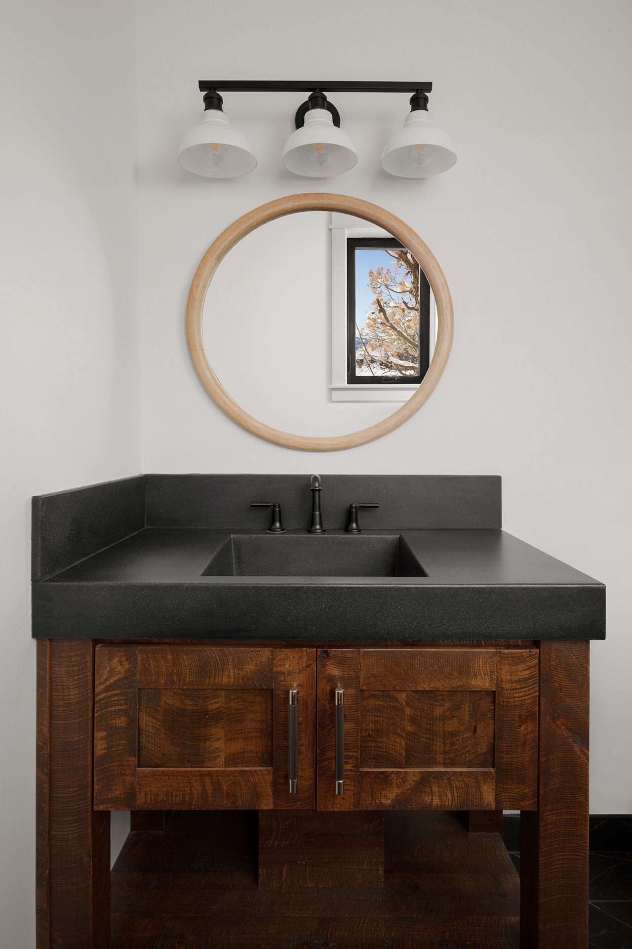 Photographed in Central Oregon during a snow, this project bridges residential and product-focused work. The space was documented with hospitality use in mind, while select images were later commissioned by Cement Elegance to feature their custom concrete sinks in context.