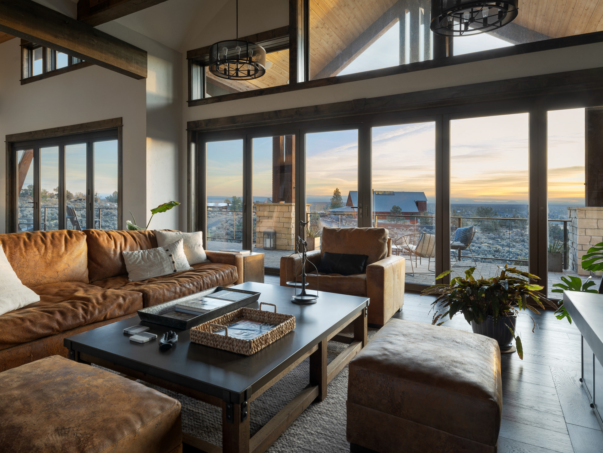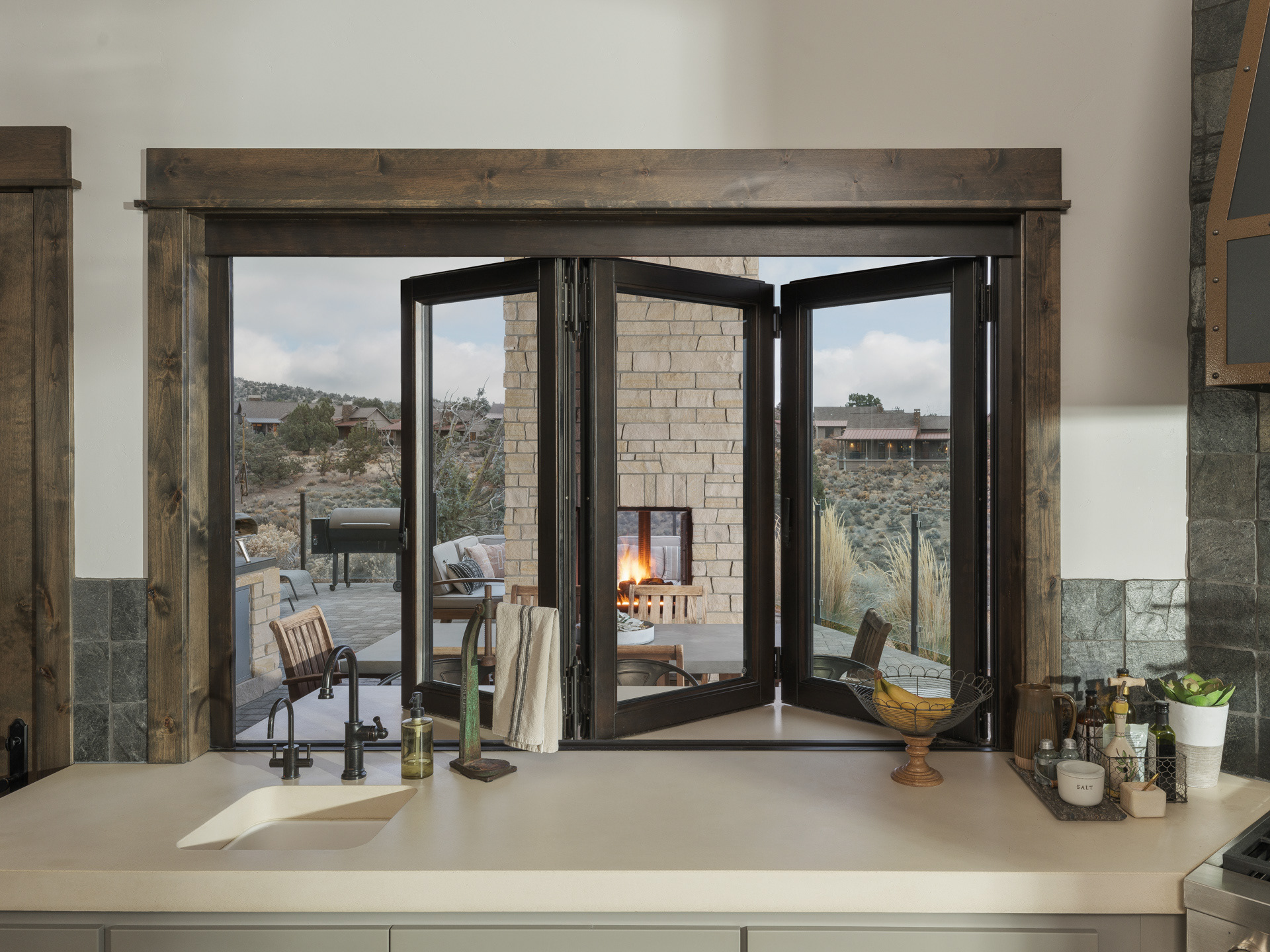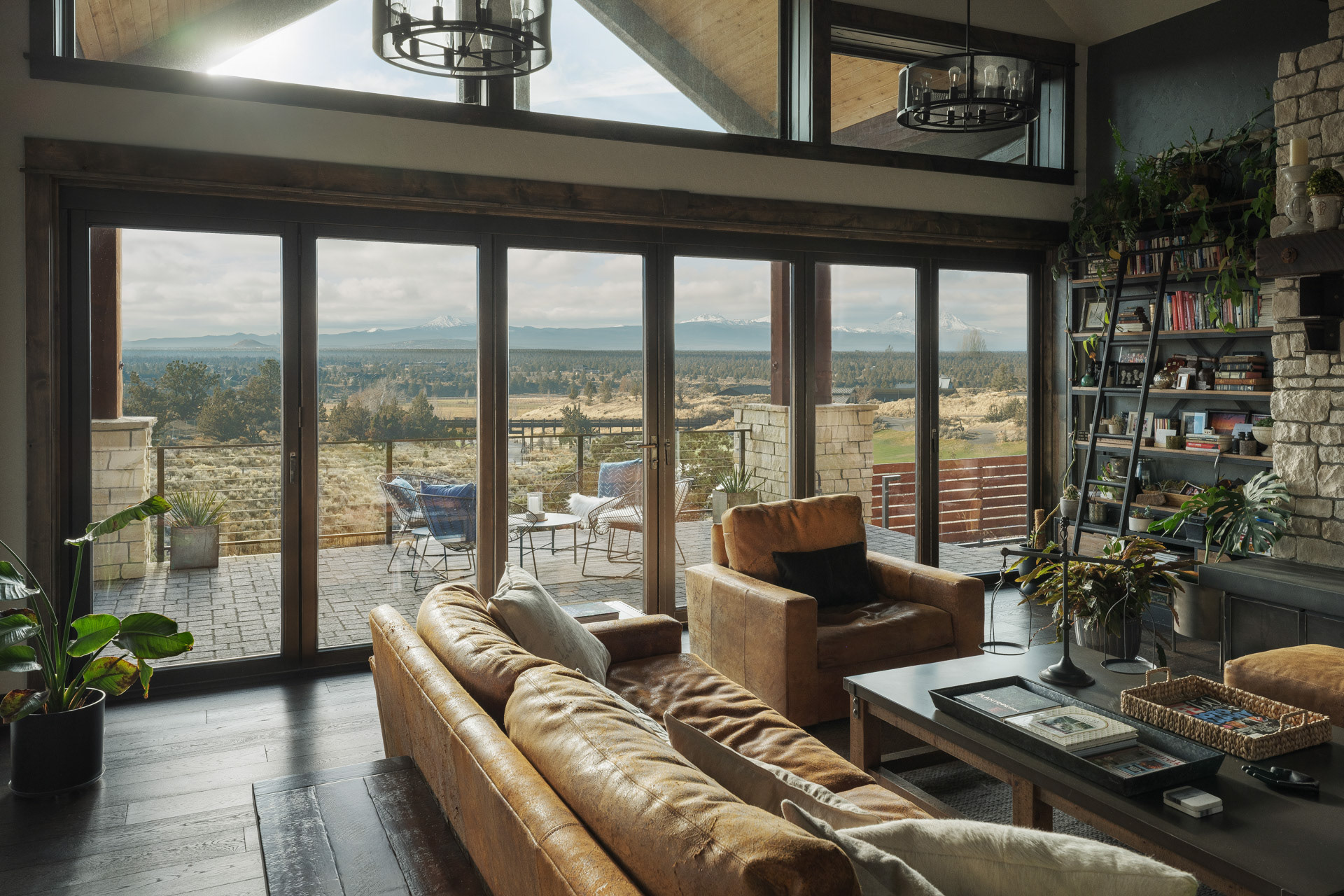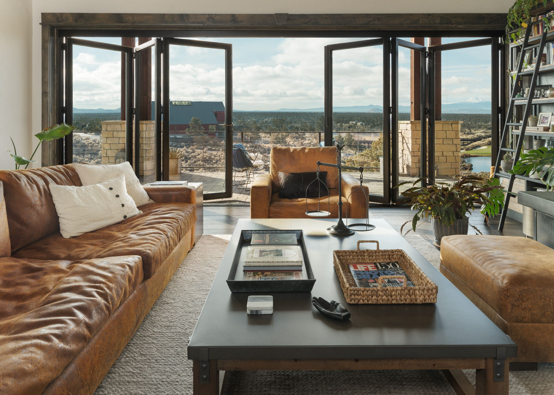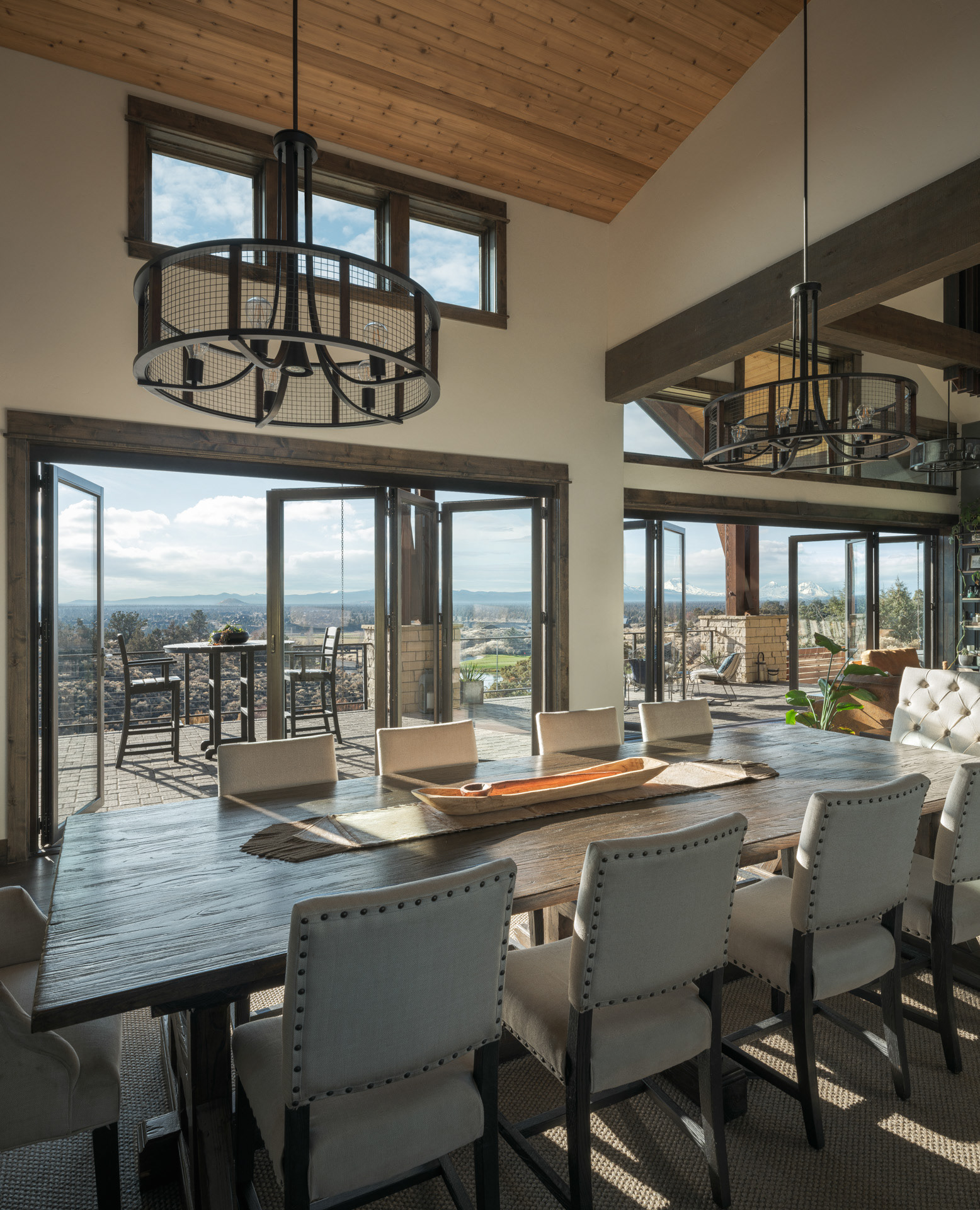 Commissioned by NanaWall, this Central Oregon residence with cascade mountain views takes full advantage of the surrounding high desert landscape through immersive opening glass walls, significantly expanding the living space and bringing the outside in.