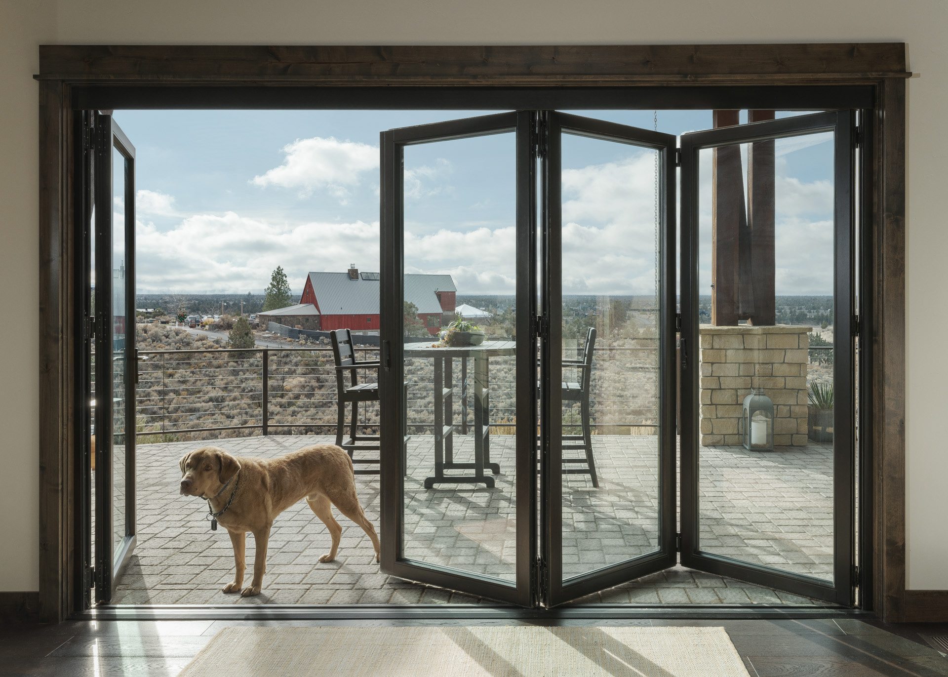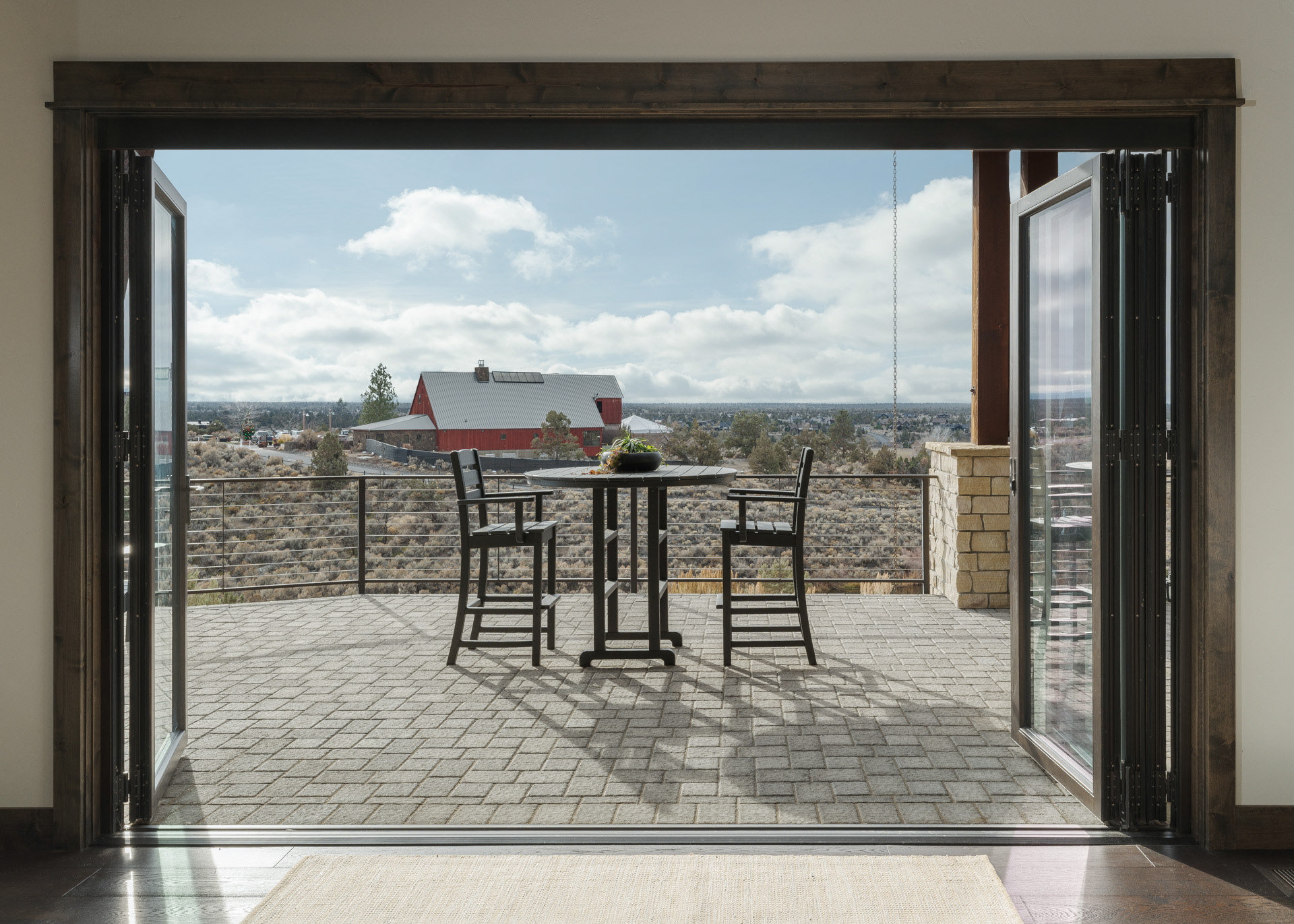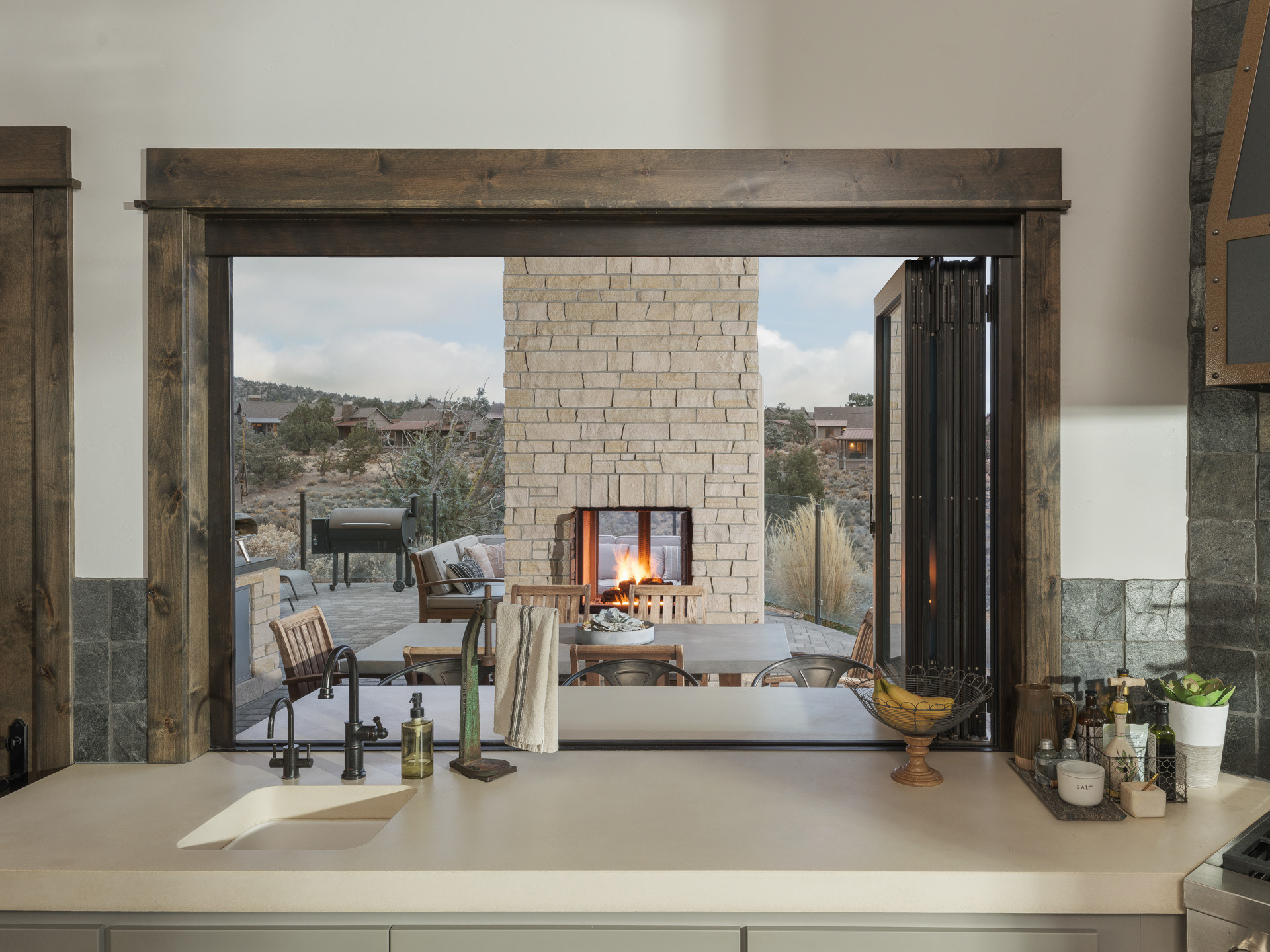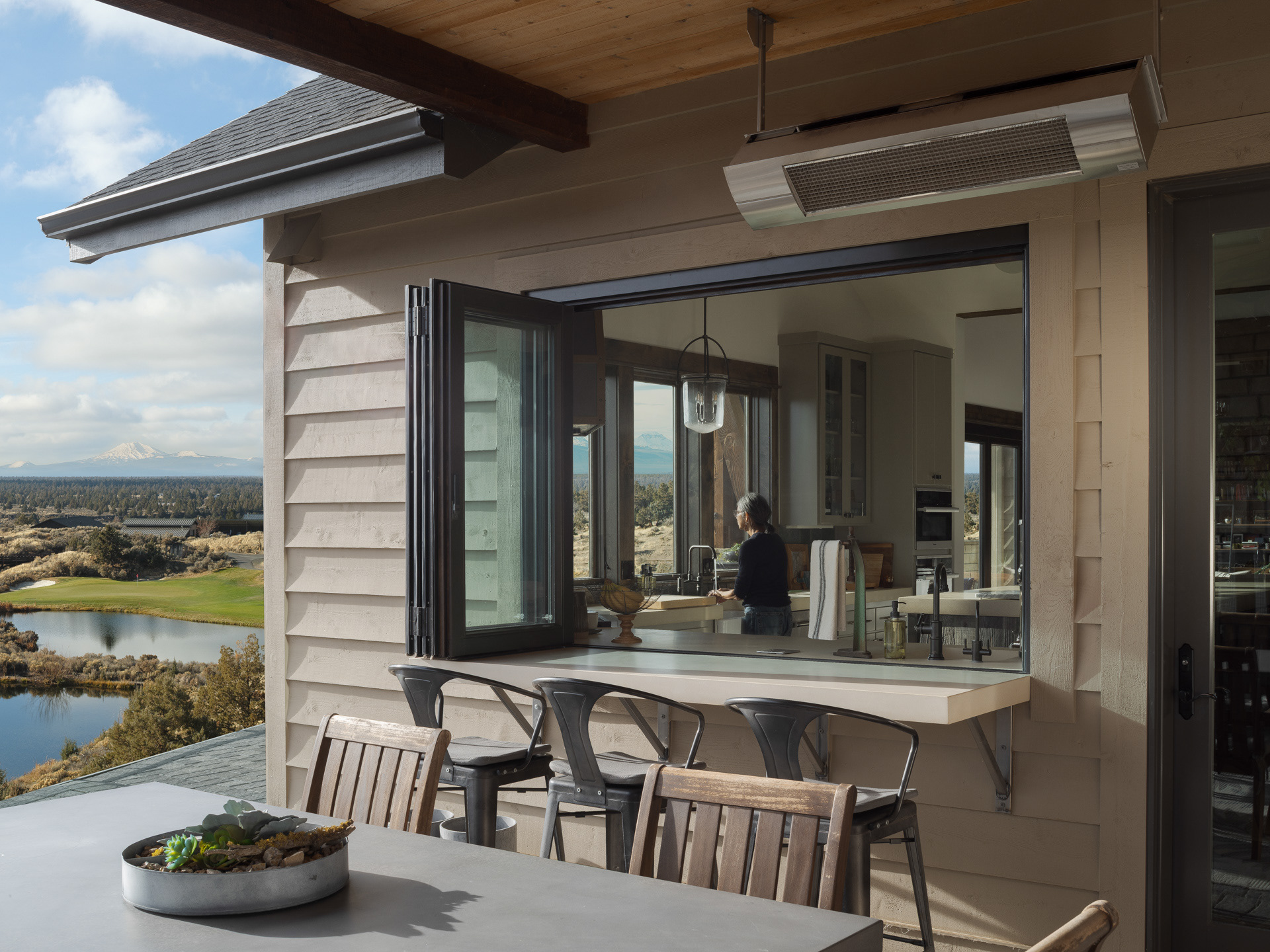 Commissioned by NanaWall, this Central Oregon residence with cascade mountain views takes full advantage of the surrounding high desert landscape through immersive opening glass walls, significantly expanding the living space and bringing the outside in.