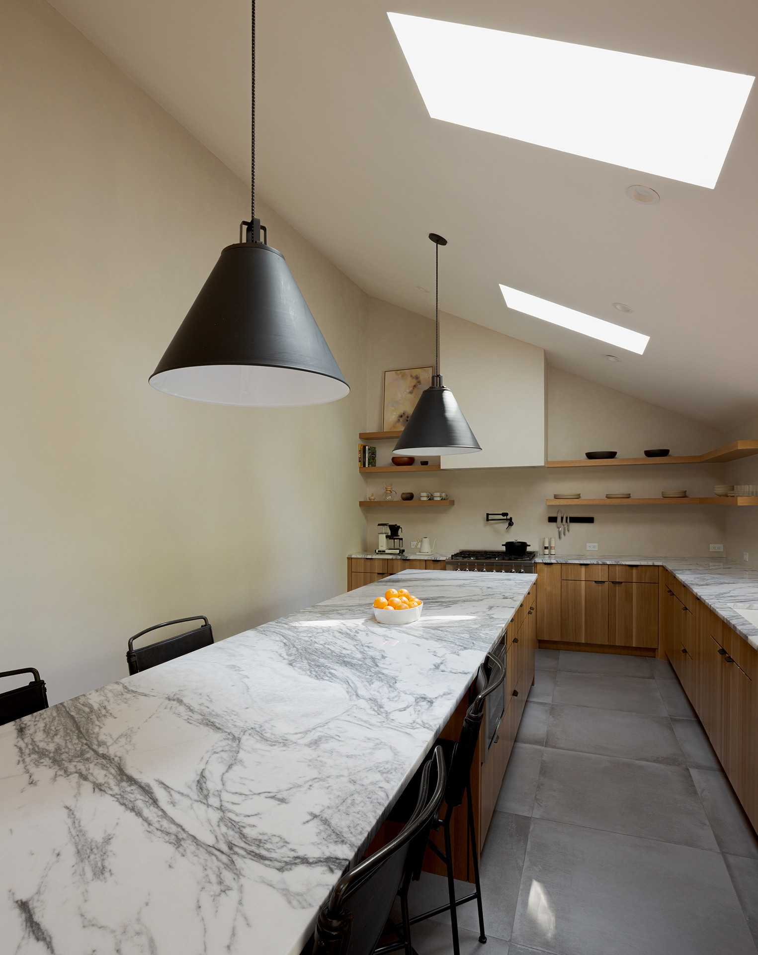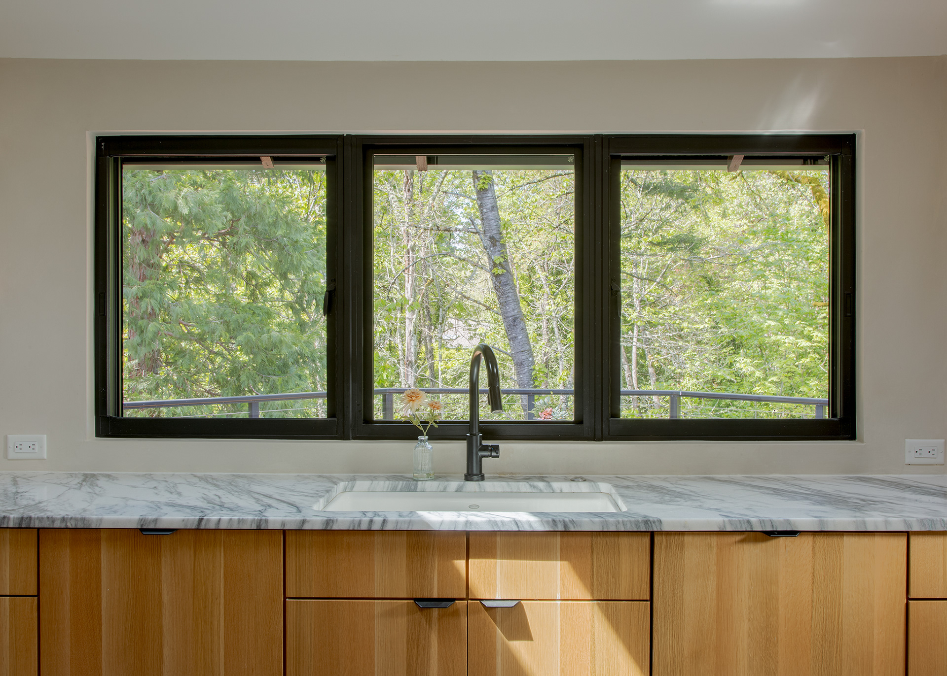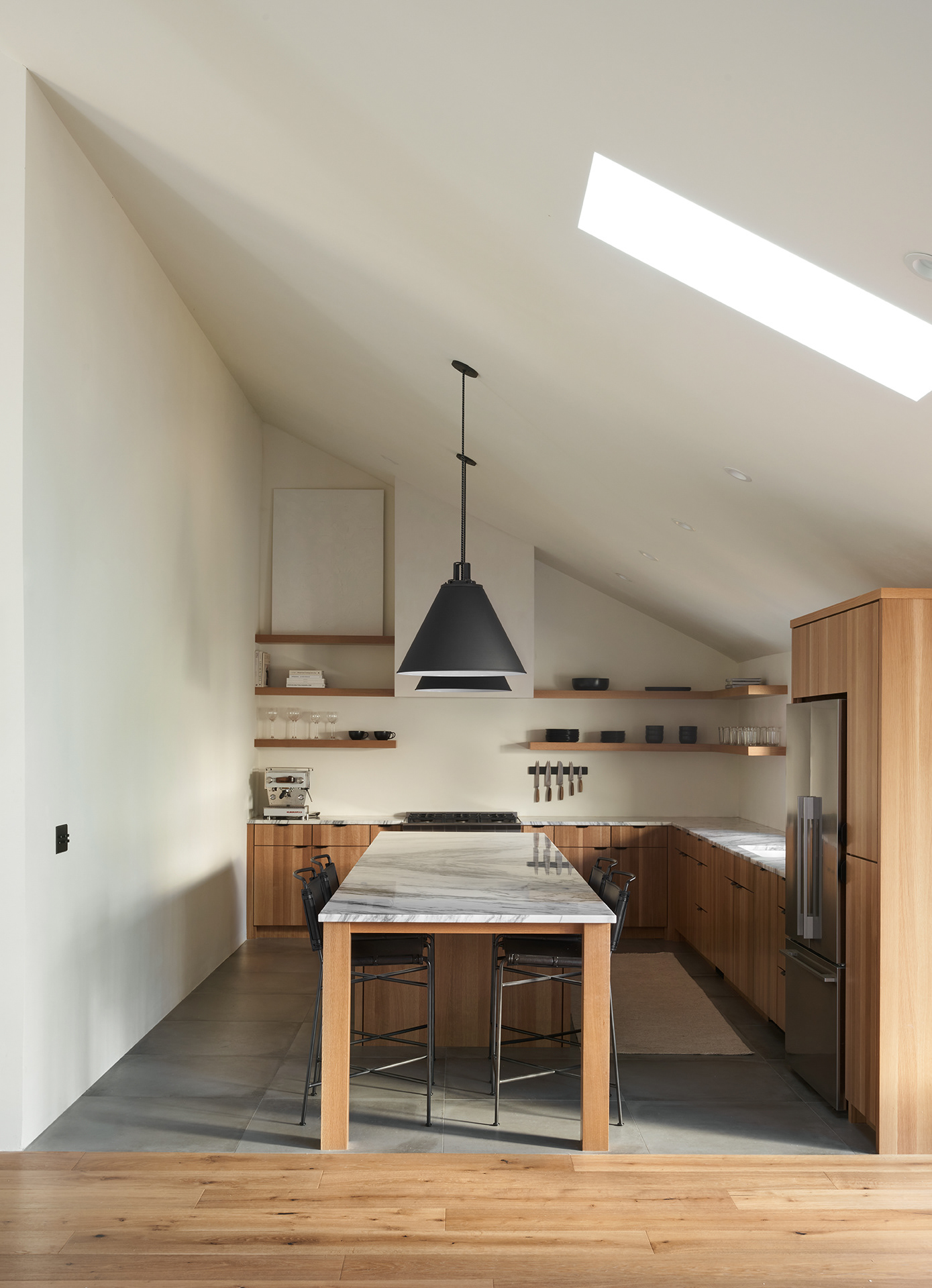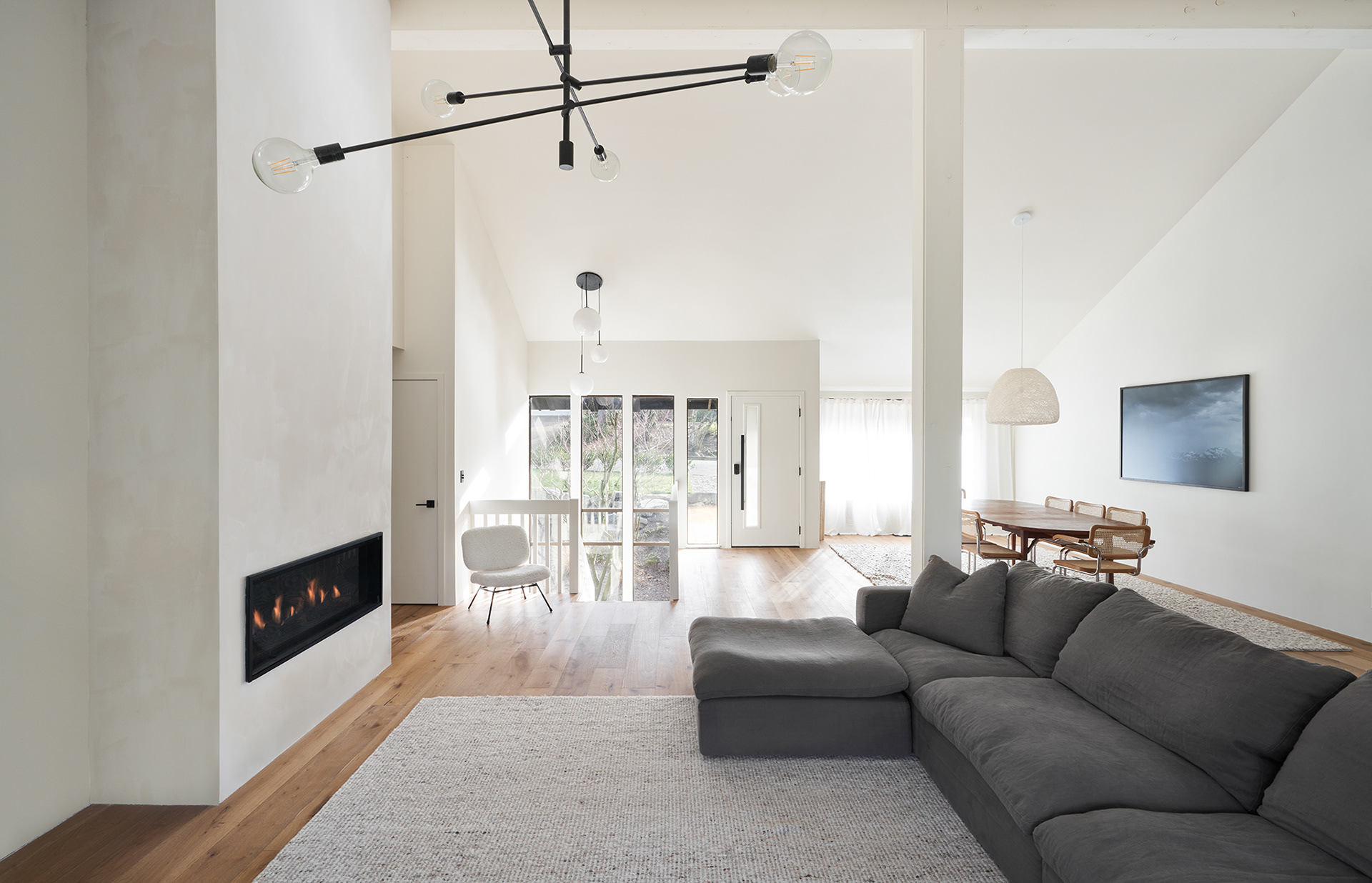 A home in the west hills of Portland documented at two distinct times. First photographed for Dune Homes after a down-to-the-studs remodel, the home was later re-photographed following additional interior design by Recast Homes, where subtle shifts towards darker tones and augmented materiality reflect the homeowner’s evolving vision.