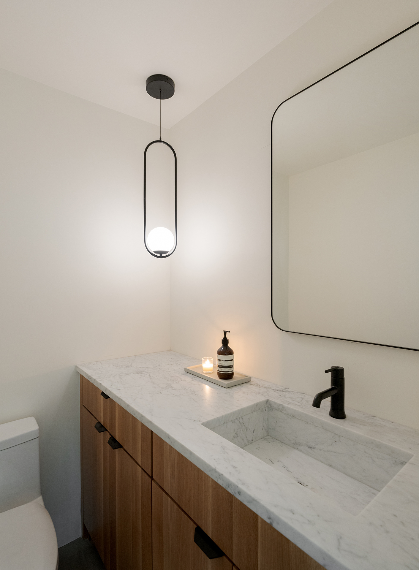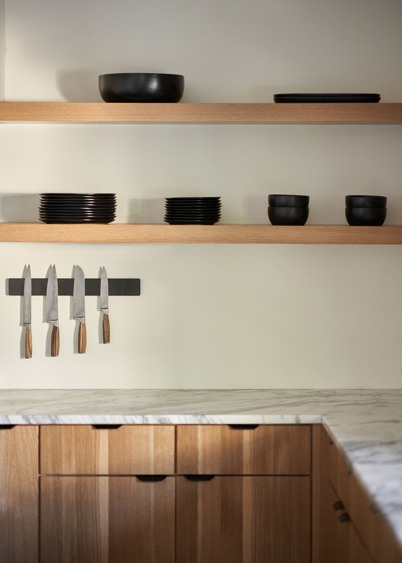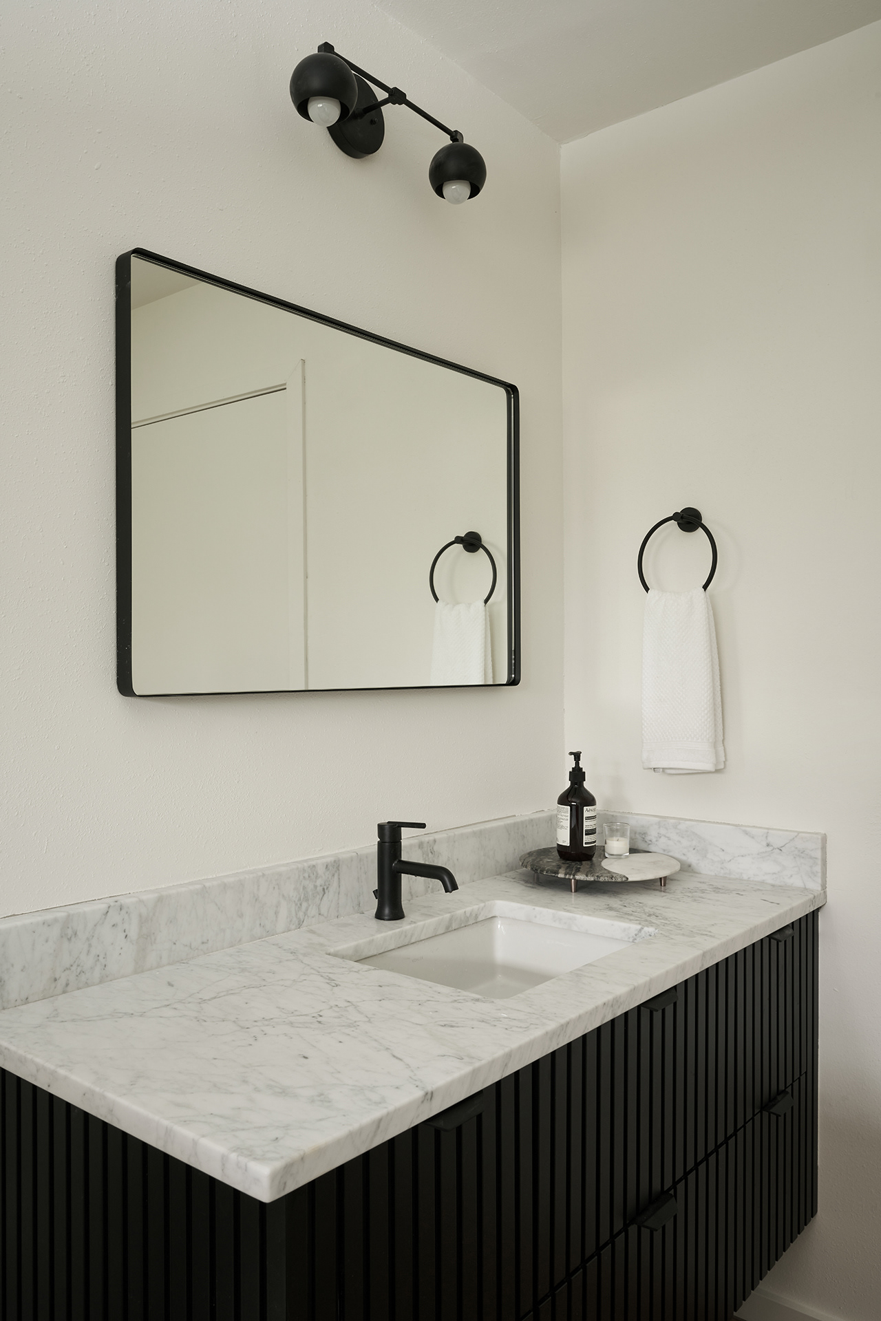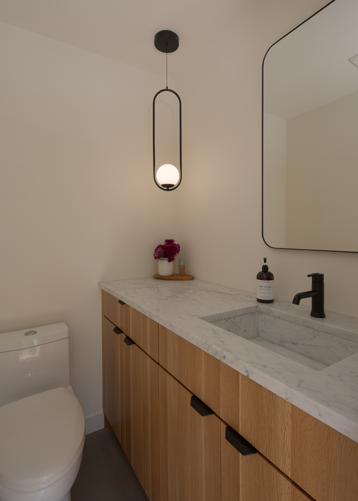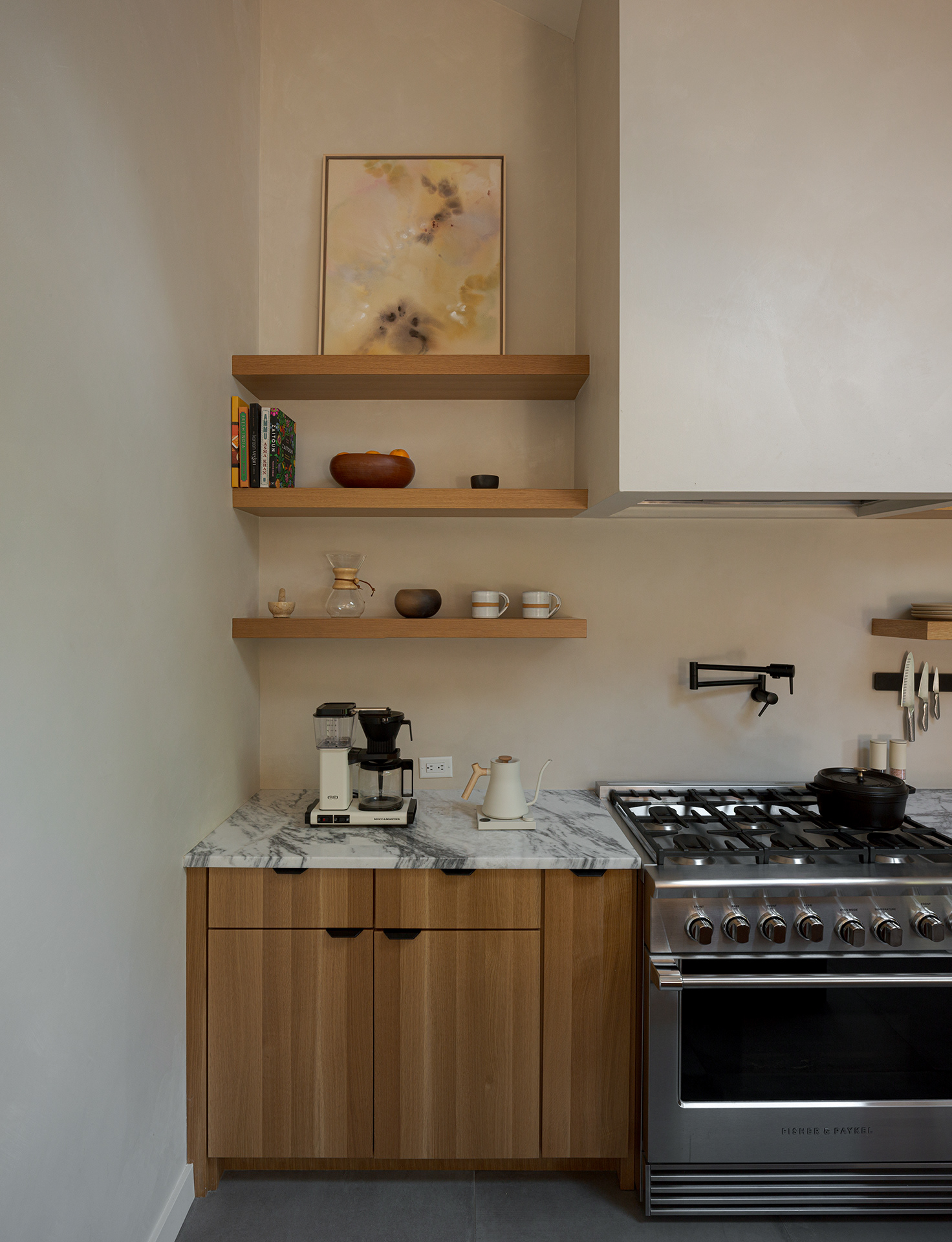 A home in the west hills of Portland documented at two distinct times. First photographed for Dune Homes after a down-to-the-studs remodel, the home was later re-photographed following additional interior design by Recast Homes, where subtle shifts towards darker tones and augmented materiality reflect the homeowner’s evolving vision.